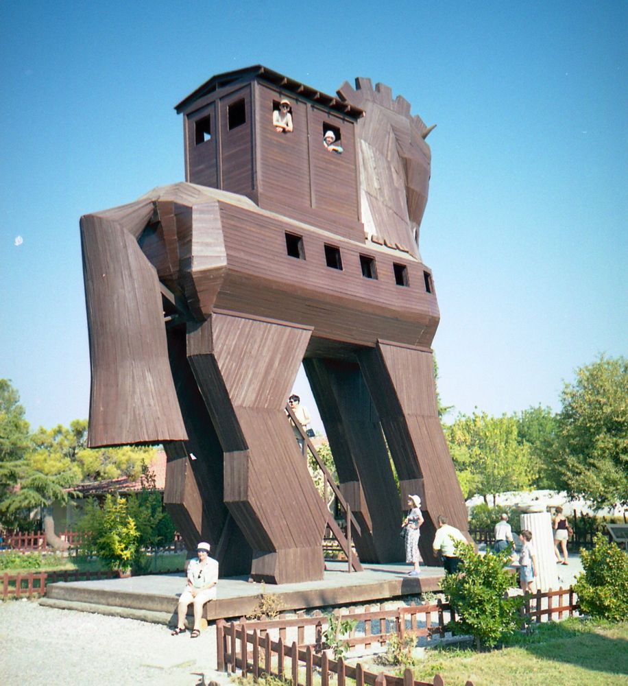 Wjazd do ruin przedstawiał sie dosyć imponująco. Przy wejściu stoi wielki drewniany koń trojański, dzięki któremu, jak opisuje Homer w Iliadzie, wojska greckie wdarły sie do miasta, . Można wejść do niego i podziwiać okolicę z góry.