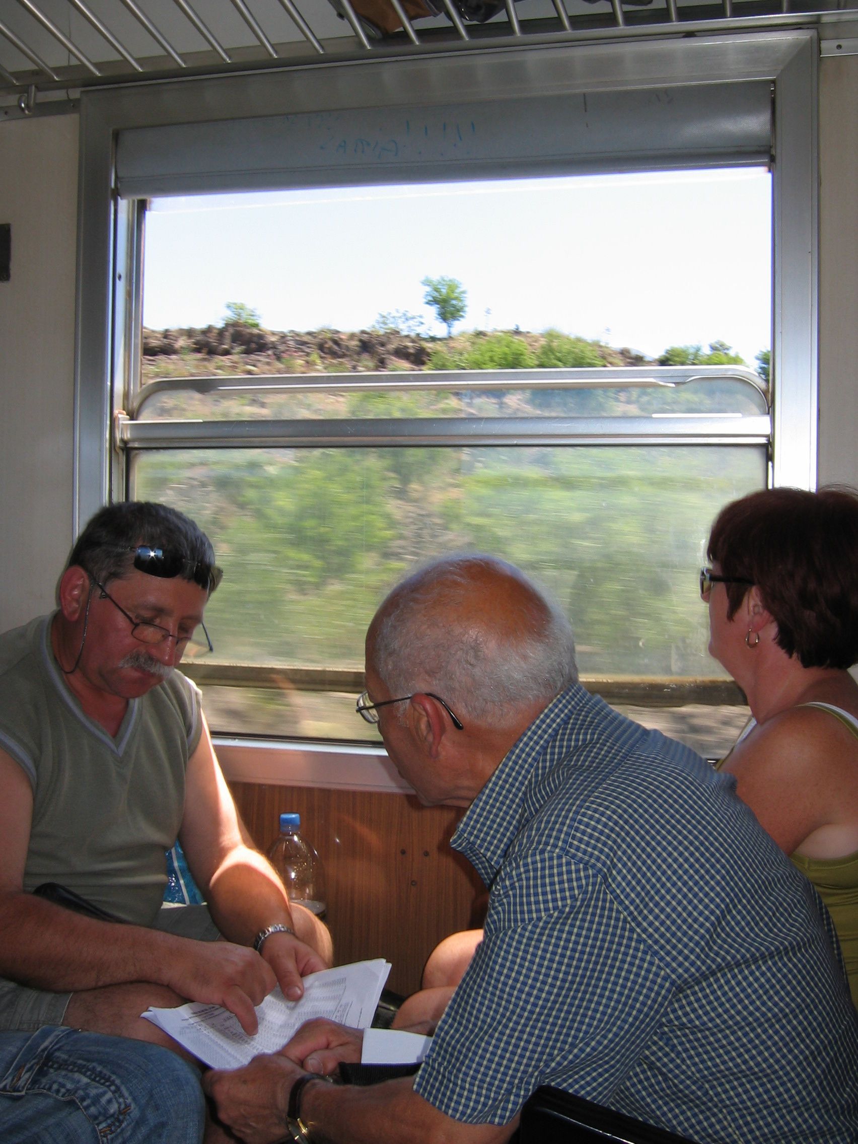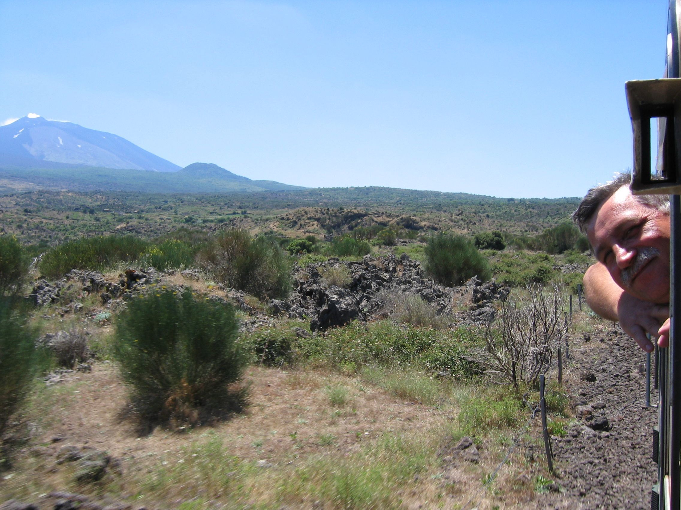 Pociąg pośpieszny, którym jechaślimy, doznał opóźnienia około godziny i nie zdążyliśmy na autobus. Następny autobus miał jechać prawie trzy godziny później więc wybraliśmy drugie rozwiązanie - podróż wokół Etny pociągiem.