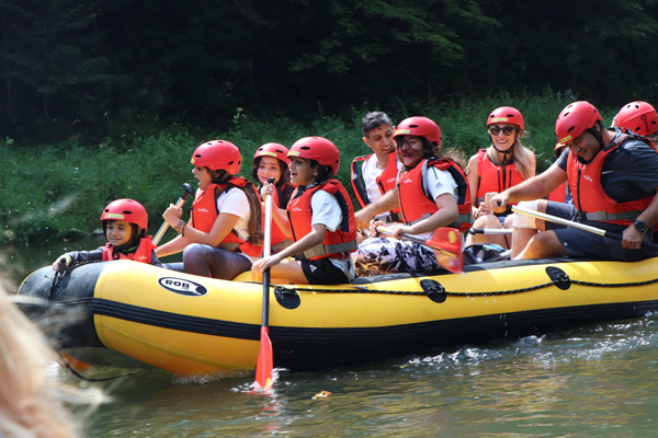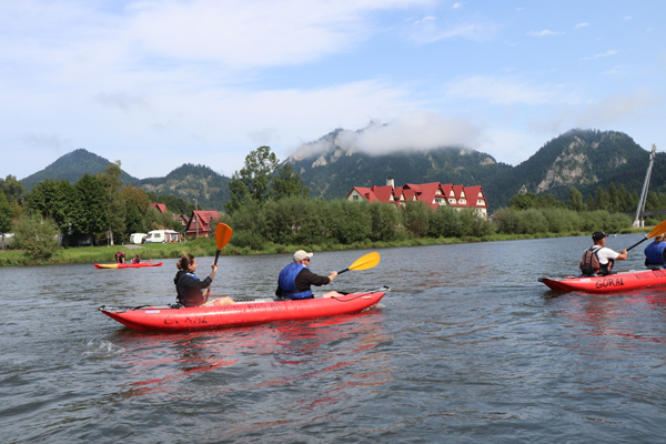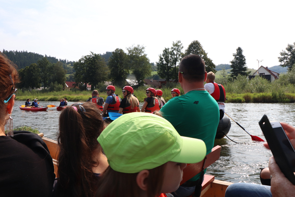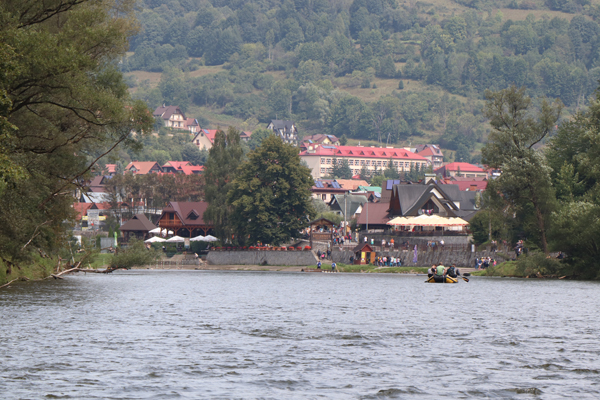 Zbliżamy się do końca spływu. Widać budynki Szczawnicy.